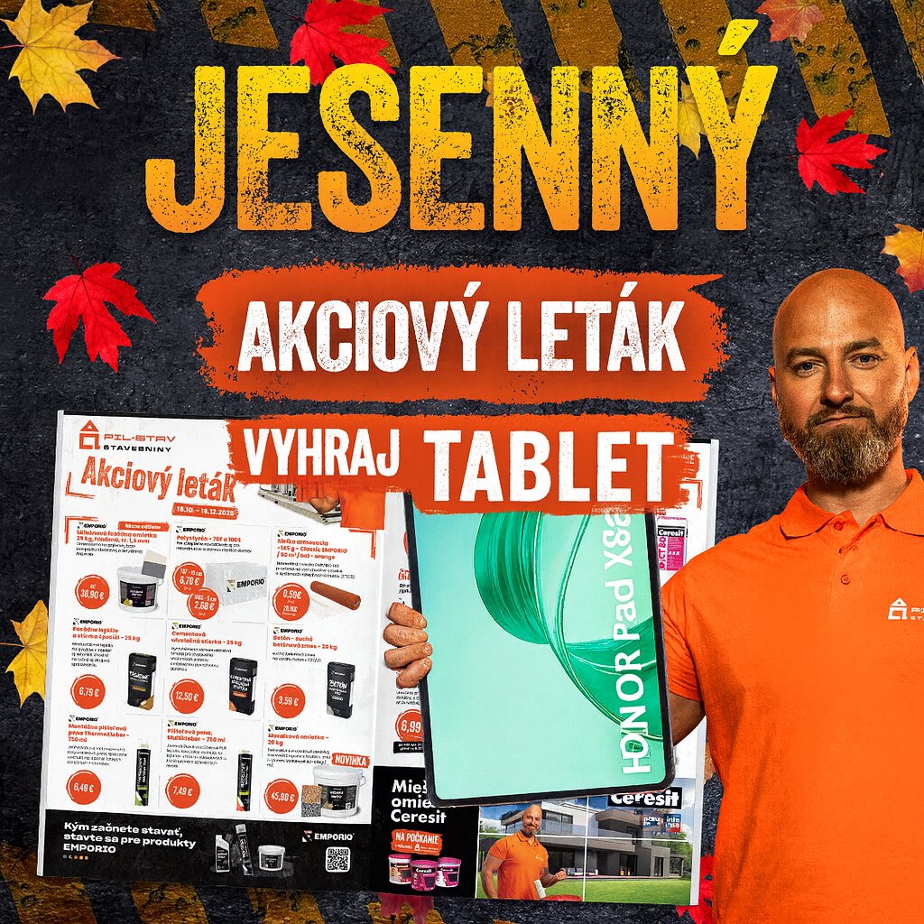 SÚŤAŽ O TABLET HONOR PAD X8a! SÚŤAŽ O TABLET HONOR PAD X8a! Osláv s nami jeseň plnú akcií a zapoj sa do našej súťaže o skvelý tablet HONOR Pad X8a! Ako sa zapojiť: Sleduj našu stránku na Facebooku Daj LIKE na tento príspevok Zdieľaj tento príspevok verejne na svojom profile Vyplň súťažný formulár: https://forms.gle/6t3DZS1L43hPPySaA Prihlás sa na odber nášho newslettera: https://pilstav.sk/ Trvanie súťaže: do 5. 12. 2025 Žrebovanie výhercu: 6. 12. 2025 Nezmeškaj šancu vyhrať! Podmienky súťaže: https://pilstav.sk/index.php?route=product/product/download&download_id=114 Popritom si pozri aj náš aktuálny jesenný leták plný zliav a akcií: https://letak.pilstav.sk/books/poqu/#p=1 Nezmeškaj šancu vyhrať a zároveň si pozri výhodné jesenné ponuky v našom akciovom letáku! ZAPOJ SA
